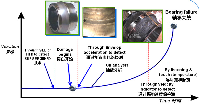 截割减速机输入、输出轴振动幅值/频率监测,经过信号解调、包络谱(早期故障)、速度谱(中后期故障)专业数据分析,判断轴承损伤情况,以及当前工况条件下的预期失效时间;